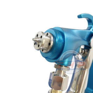 - Nắp chụp khí: Có hệ thống lỗ khí được tính toán chính xác để hạt sơn bung ra đồng đều, không bị hiện tượng tích tụ sơn ở giữa dải phun.